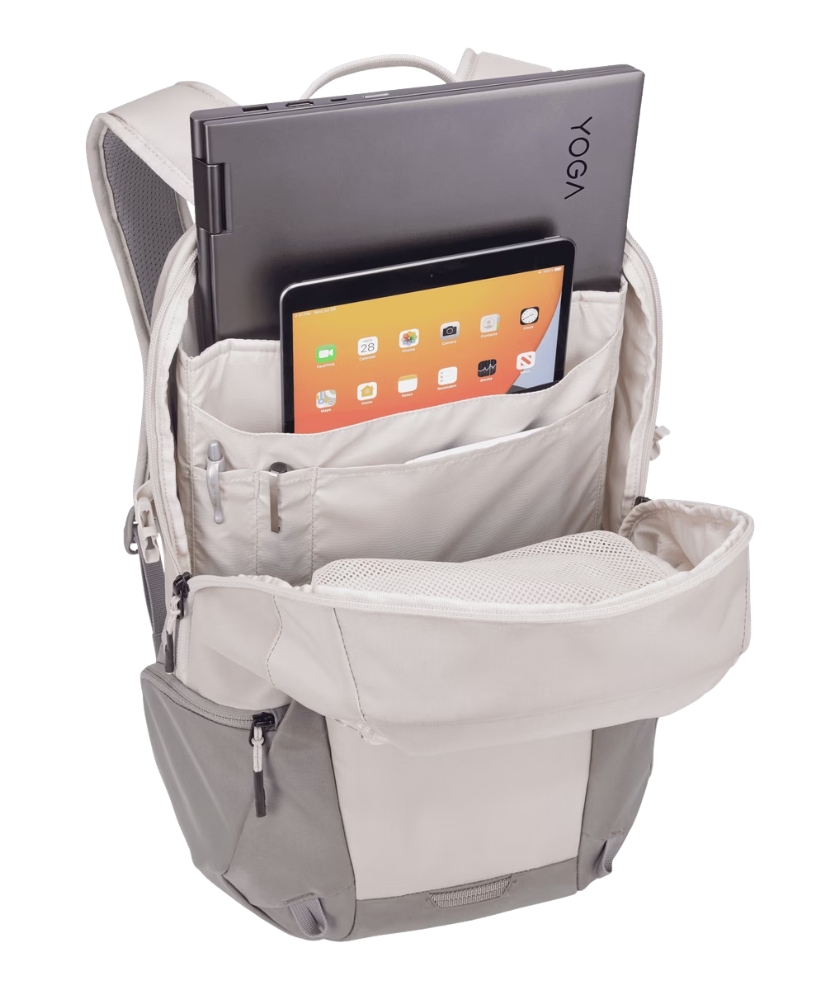 - Roomy zipped mesh pocket stretches to add volume to store electronic accessories and other personal items.