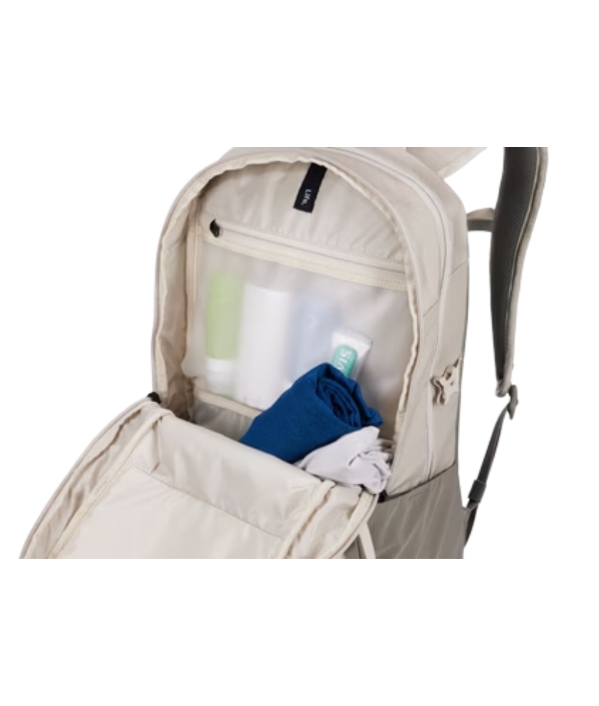 - Secondary compartment stores a change of clothes, accessories, or other personal items and has a zipped TPU pocket that is water-resistant to protect other contents and is opaque for privacy.