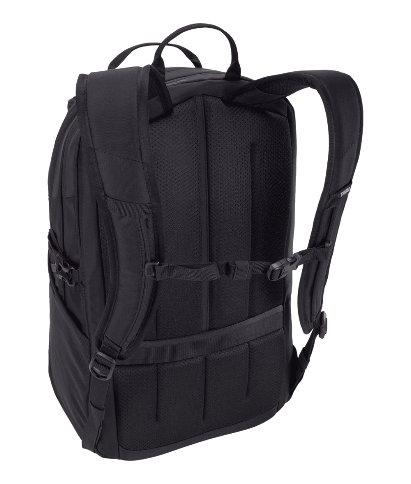 - Sternum strap, padded back panel with airflow channel, and side compression straps to balance the load, making it more comfortable to carry.