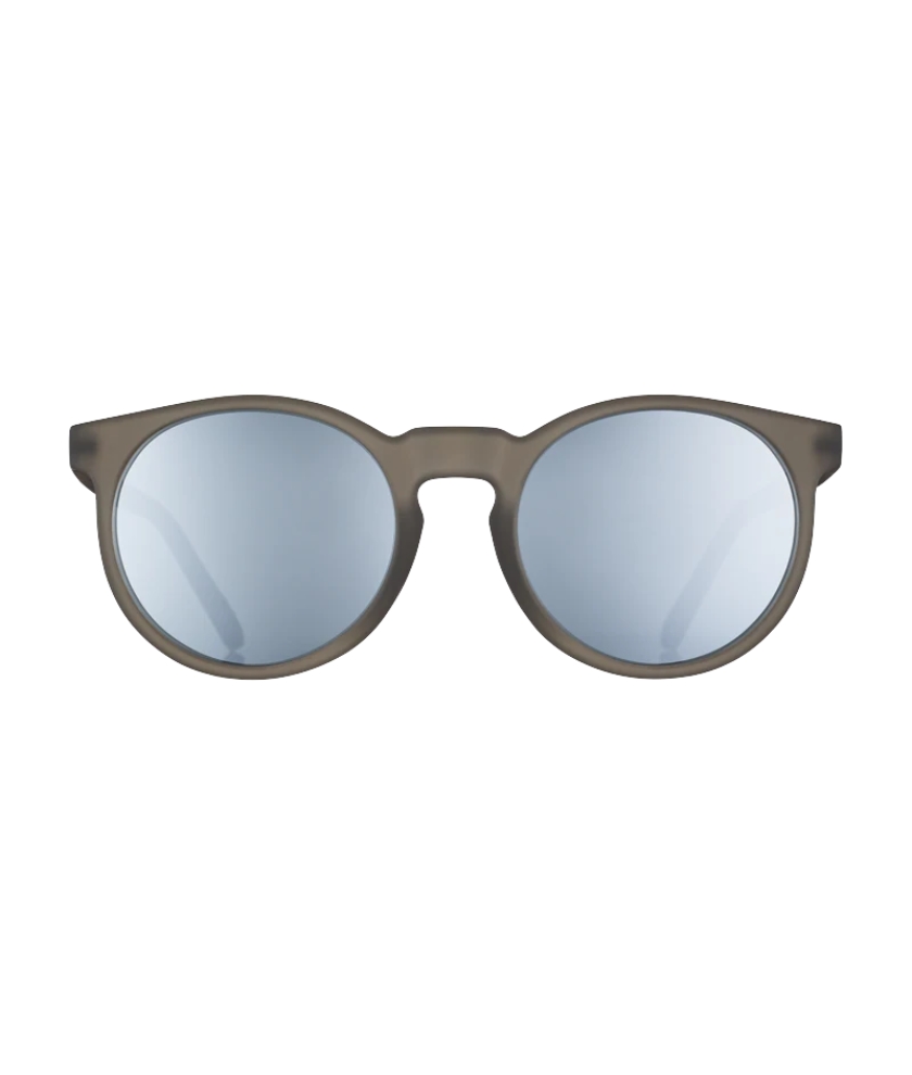 The age-old issue when you're too cool for school...they were out of black (but you wanted gray anyway). Round gray sunglasses in a round frame with gray reflective lenses, plus full UV400 protection in polarized lenses. Now you're smart AND hip.