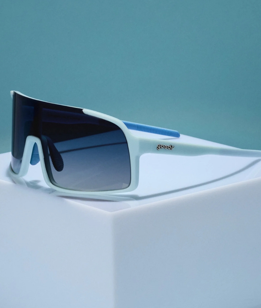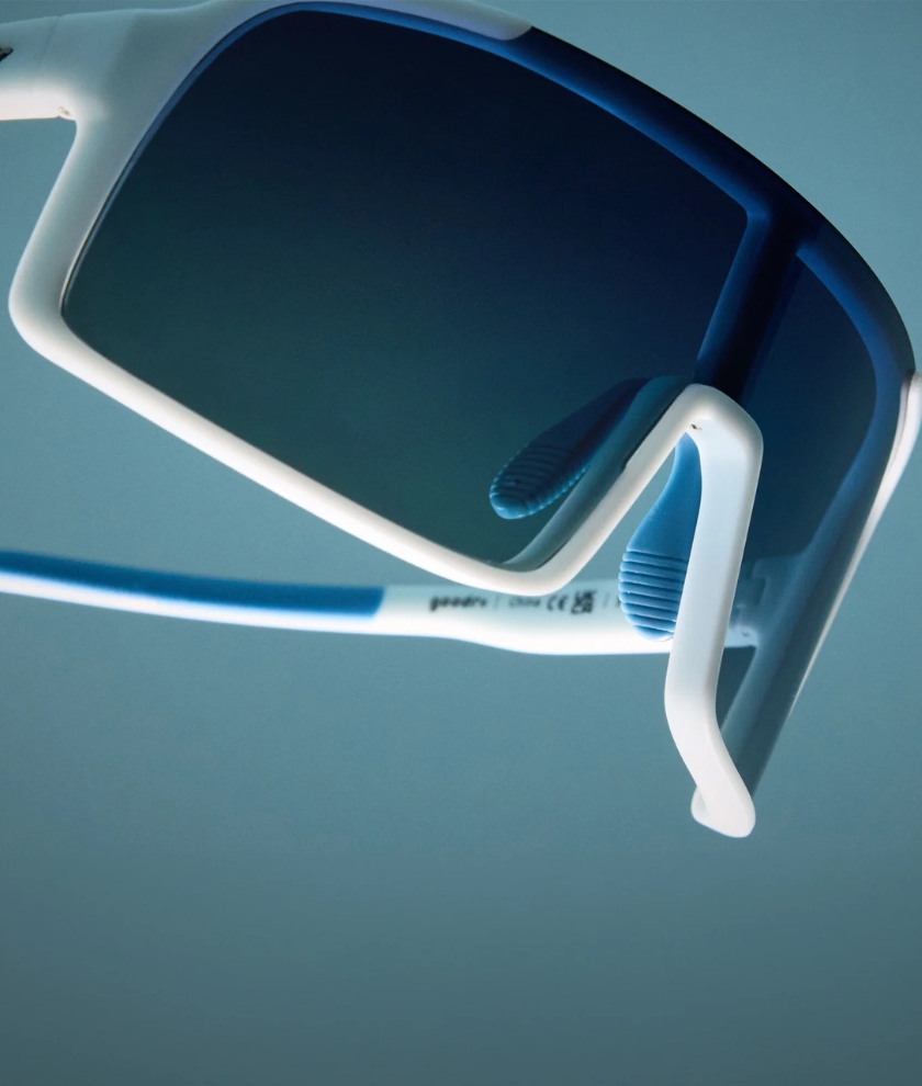 Modern shield wraparound shades with an anti-fog coating for cosmic levels of performance.