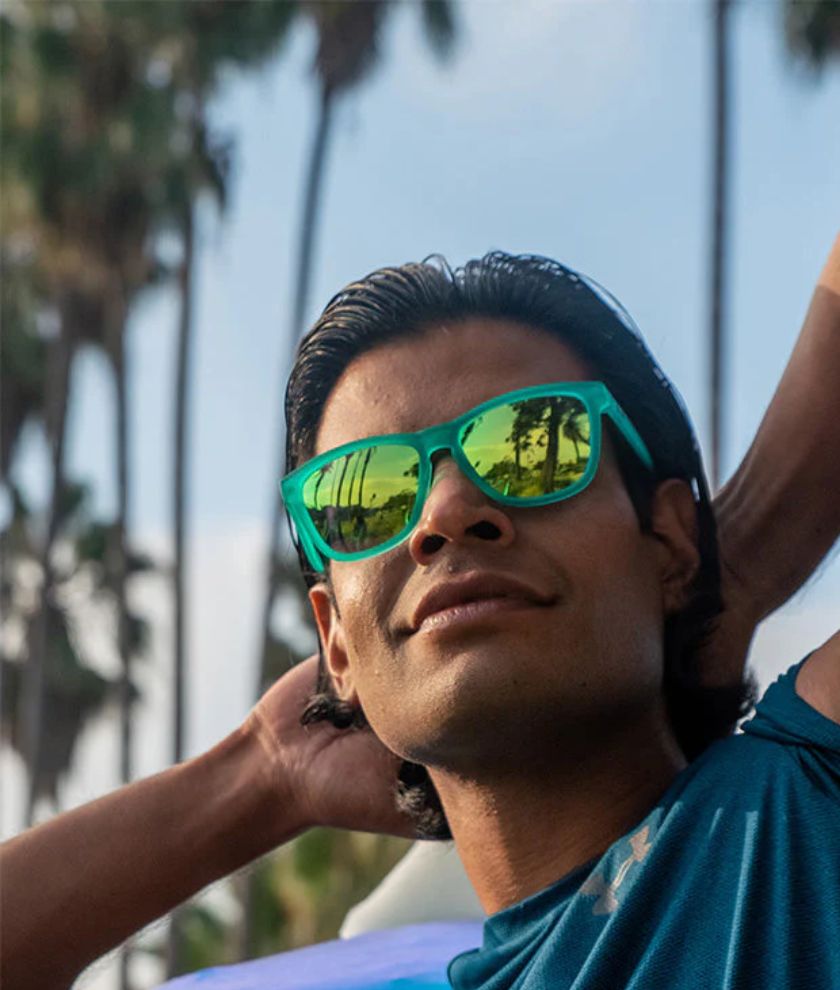Mirrored lenses reduce glare, hide your eyes, and come in vibrant colors.