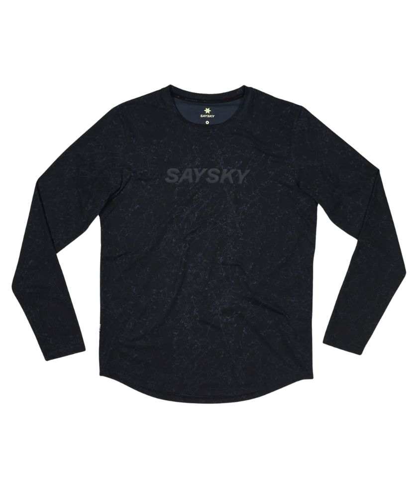 The SAYSKY Map Blaze Long Sleeve is a men's running t-shirt with the Copenhagen Origins all-over print. It comes with black SAYSKY logos on the front and back right hip. The fit is regular and designed to provide you with comfort and a high level of performance on the run. The shirt comes with a reflective print on the back.
