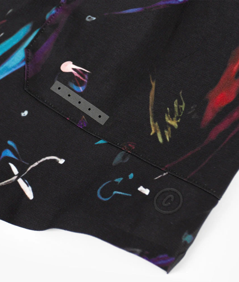 - lightweight stretch recycled FLUIDE™ ripstop woven fabric with a PFC free DWR and chlorine/saltwater resistant finish.