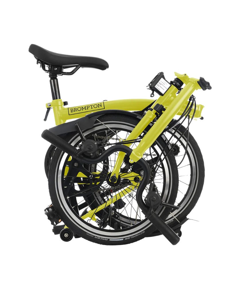 Rear Wheel: Double wall rim, 28 spoke, Brompton Wide-ratio 3-speed internal gear hub