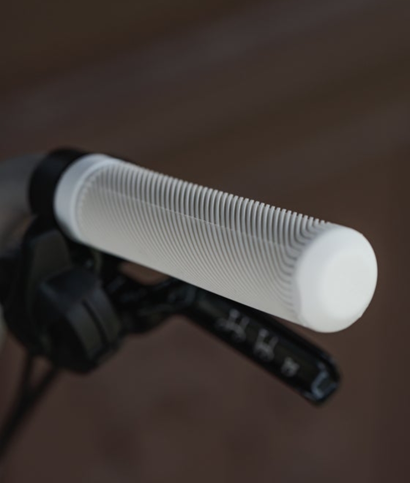Grips : Exclusive white lock-on grips with soft-compound rubber adhered to an engineered core
