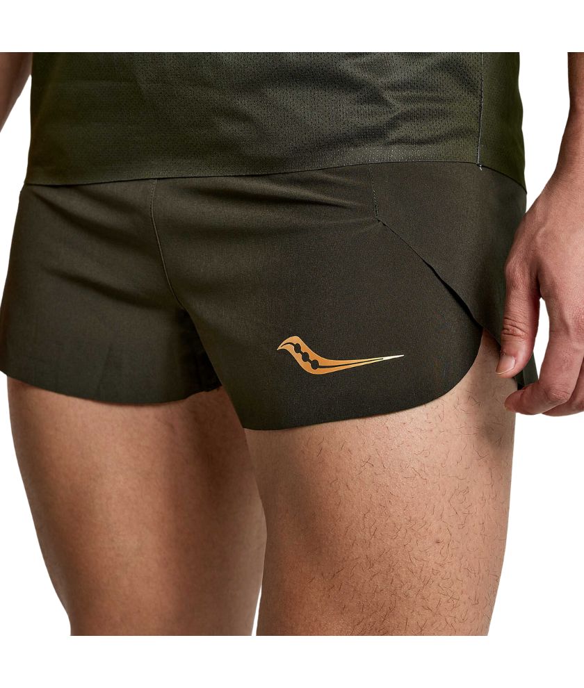 A faster finish, but make it comfortable. That's exactly what we had in mind when we designed the Saucony Elite Split Short. It delivers a ride you won't feel with a lasercut hem seam and 3"" inseam. You'll get more out of every stride. So suit up and outrun your opponents.