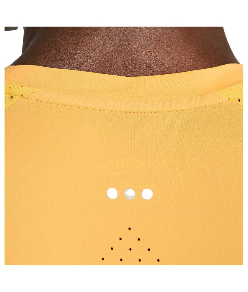 • Laser perforation at center front and center back for added breathability.
