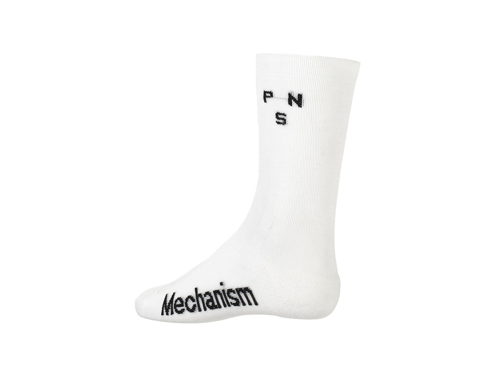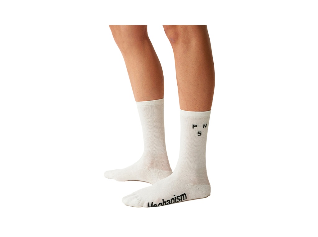 A simple, understated thermal sock. The Mechanism Thermal Socks is made with Merino Wool for added insulation in the colder months. Merino keeps its insulating properties even when wet, and the long cut adds extra warmth and temperature control. This sock features subtle Pas Normal Studios and Mechanism branded logos. Double knit heels and toes ensure extra durability.