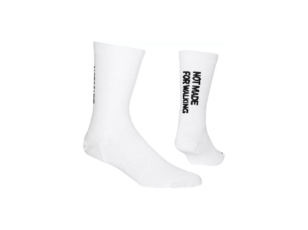 The SAYSKY NMFW High Combat Socks are designed to look cool and make your run super effective on all distances. Put these on and your feet have never felt so in sync with your shoes. These are high calf socks in white with a NOT MADE FOR WALKING statement.