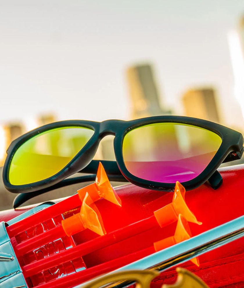 Wouldn't it be amazing if we could just respawn in real life?! These translucent black OG frames with pink reflective lenses will allow you to do that. NOT. But they do offer no-slip, no-bounce performance, plus full UV400 protection and polarized lenses. Isn't that almost just as good?!