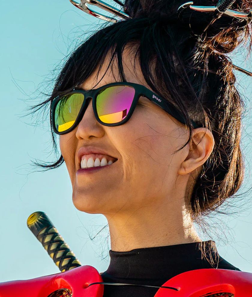 Mirrored lenses reduce glare, hide your eyes, and come in vibrant colors.