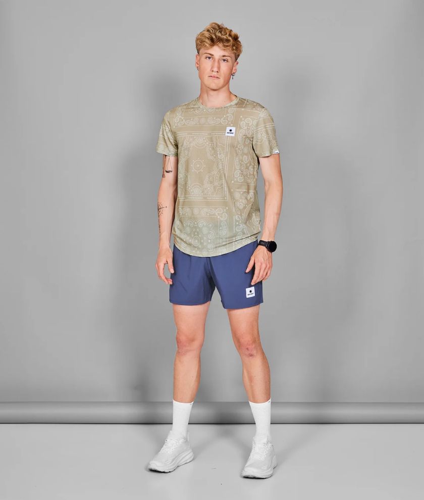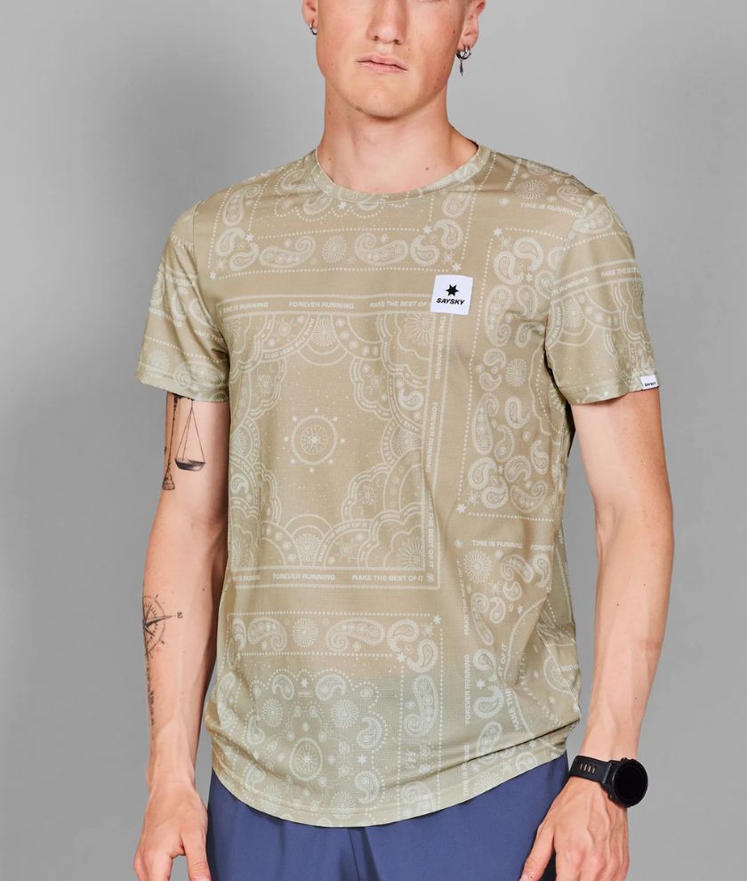 The SAYSKY Paisley Combat T-shirt is a running t-shirt with an allover Saysky paisley print; it has a woven label on the front and back. The t-shirt is moisture-wicking and quick-drying, which ensures high breathability and increased airflow. The technical construction of the fabric reduces the fabric’s ability to cling to your skin.