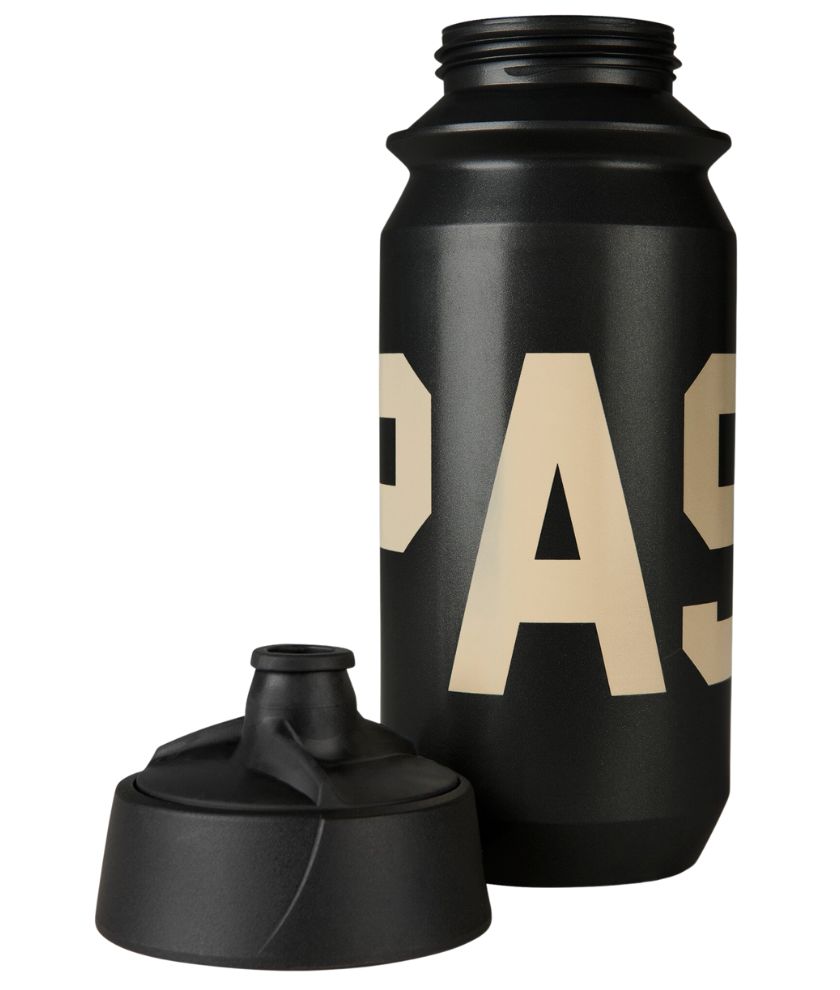 A functional and visually appealing bidon featuring an oversized PAS logo. With its innovative membrane and lockable valve, this bidon is easy to use, allowing you to rehydrate on your ride effortlessly. The bidon features a lockable valve that can be twisted with one quick and easy movement. When locked, it is impossible to spill, which means no more fumbling with pull spouts. Constructed from a soft, BPA-free, recyclable plastic with a large opening, the bidon is both easy to squeeze and easy to clean after use while remaining environmentally friendly.