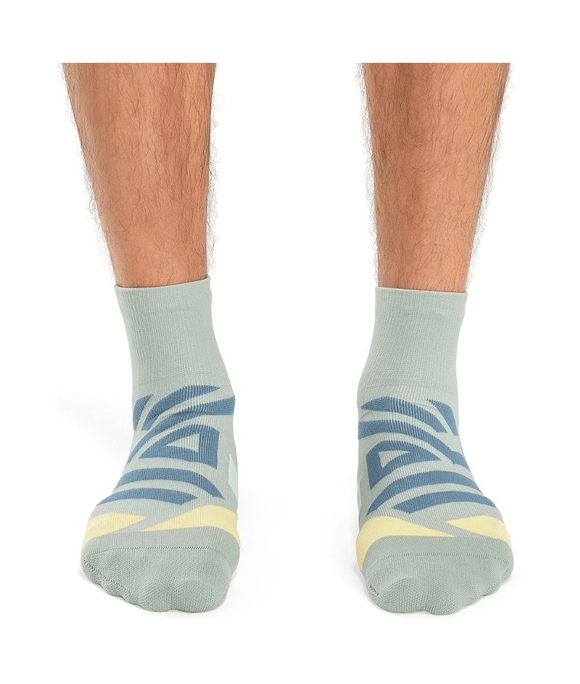 The pattern at the arch triggers sensory receptors to prime your feet for the run while Swiss engineering keeps the sock firmly in place for performance standards that don't slip.