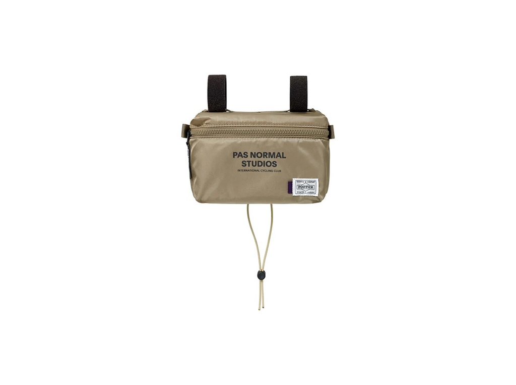 Custom designed with cycling adventures and exploration rides in mind, the third iteration of the Pas Normal Studios x Porter-Yoshida & Co. collaboration has produced a simple and understated Handlebar Bag. Developed with a structured rectangular shape for easy one-hand access while riding, the water-repellent nylon fabric keeps your possessions protected from the elements. The open storage compartment provides ample space for bars, gels, tubes, pumps, digital cameras, and extra Stow Away layers, while two external front pockets allow for quick access to high-use accessories as you ride.