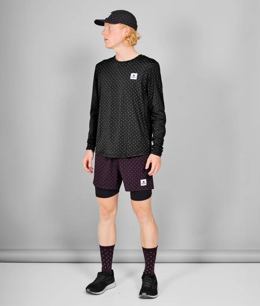 The SAYSKY Reflective Polka Pace Long Sleeve is a long sleeve running t-shirt with an allover reflective polka dot print. Our pace fabric is ideal if you're looking for a slightly heavier, yet super soft fabric with great wicking abilities.