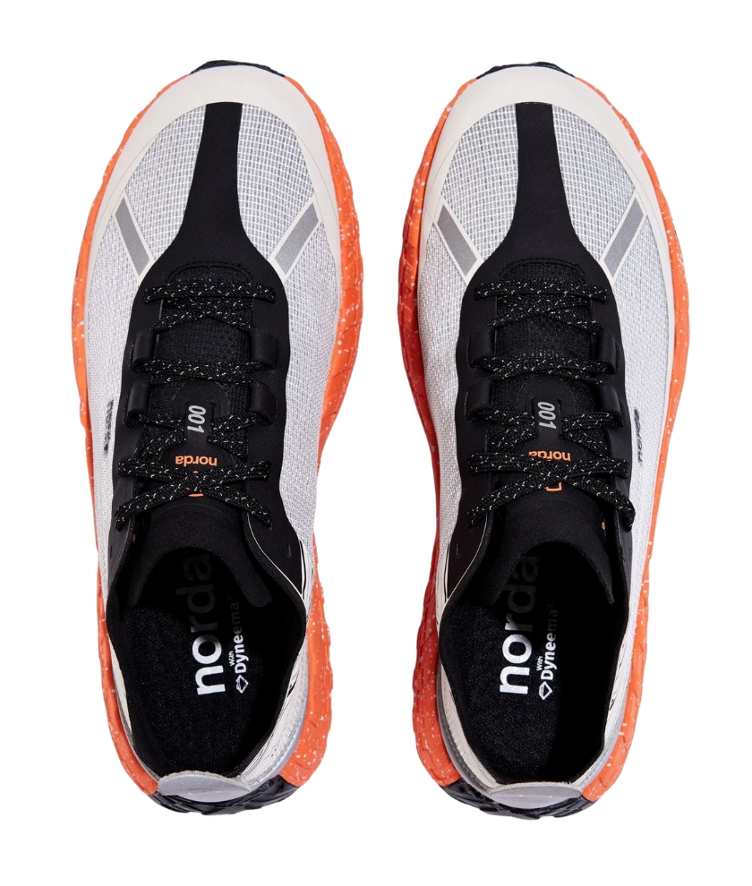 The entire norda™ 001 upper is seamlessly constructed with Dyneema®, the world’s strongest and lightest fibre™ to deliver the best possible performance, highest abrasion resistance, with the lowest environmental footprint . Bio-based Dyneema® fibre mass balance approach, sustainably sourced. Bluesign® approved material; ISCC certified.