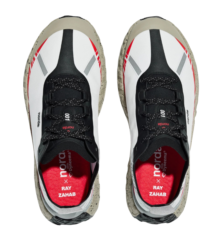 The entire norda™ 001 upper is seamlessly constructed with Dyneema®, the world’s strongest and lightest fibre™ to deliver the best possible performance, with the lowest environmental footprint . Bio-based Dyneema® fibre mass balance approach, sustainably sourced. Bluesign® approved material; ISCC certified.