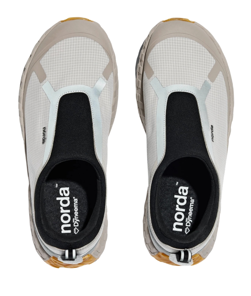 Upper : A Bio-Dyneema ® upper with an added elasticized Bio-Dyneema ® ️ developed exclusively by norda TM ️ allows for a fit that remains unchanged over time.