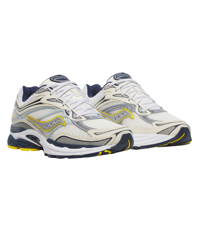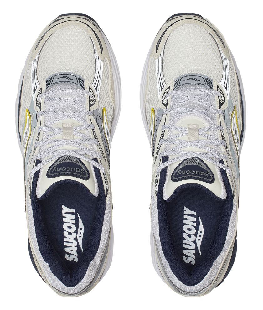 The 2000s called. This 2010 highlight of the ProGrid Omni 9 adds breathable mesh and synthetic details to functional and utilitarian outdoor considerations. It uses tone-on-tone metallics, true iridescence, and reflectivity for the books. A recycled lining and footbed add a touch of sustainability.