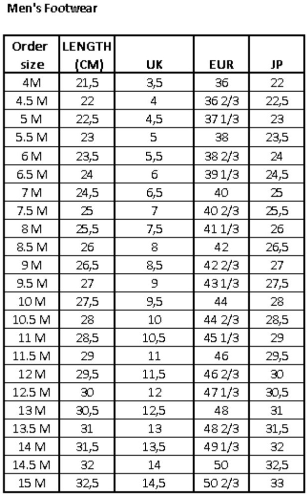 | Size | 40 2/3 or 41 1/3 or 42 or 42 2/3 or 43 1/3 or 44 or 44 2/3 or 45 1/3 or 46 |