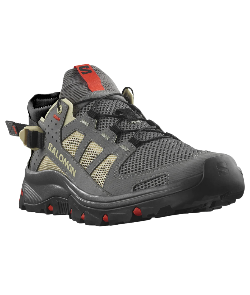 Fully committed to wet and wild exploits, TECHAMPHIBIAN 5’s reinforced toe cap and fully stitched construction will keep your feet protected while its sticky outsole ensures grip on slippery terrain. With a collapsible heel for versatility and ease of use, and quick drying, breathable materials on the upper.