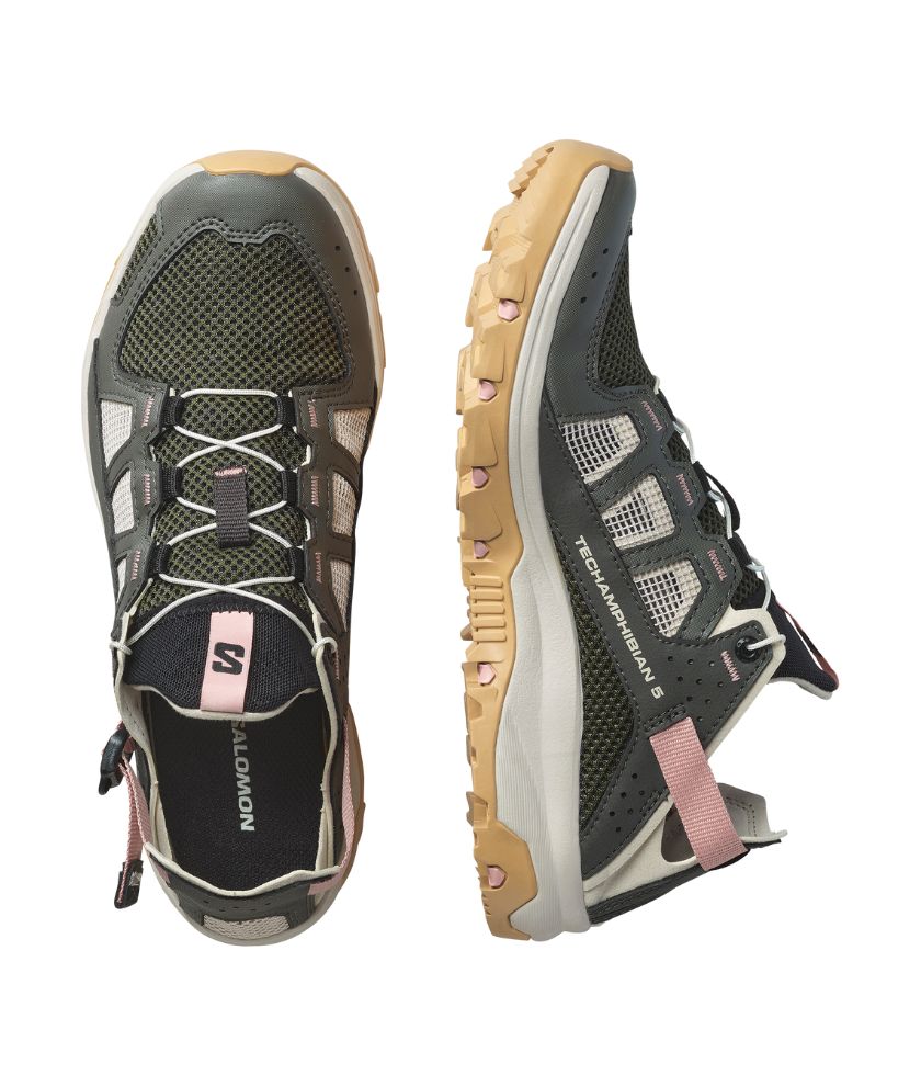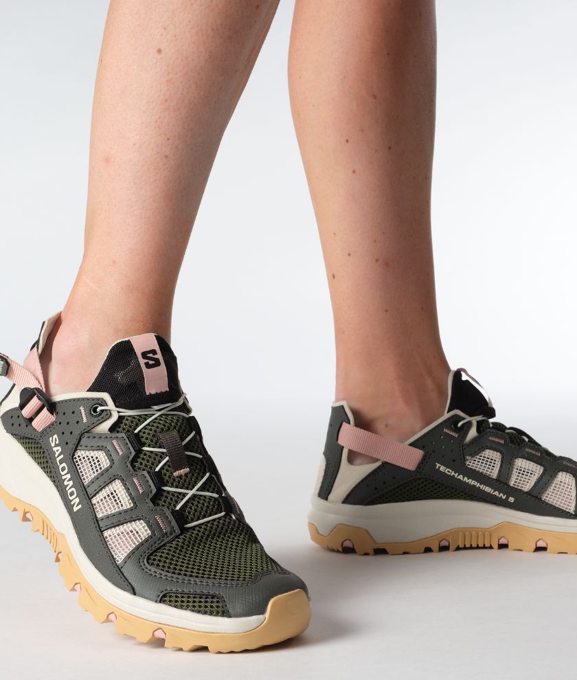Fully committed to wet and wild exploits, TECHAMPHIBIAN 5’s reinforced toe cap and fully stitched construction will keep your feet protected while its sticky outsole ensures grip on slippery terrain. With a collapsible heel for versatility and ease of use, and quick drying, breathable materials on the upper.