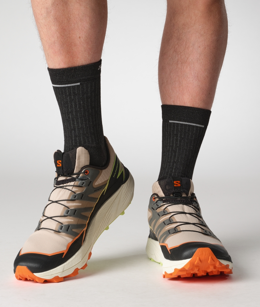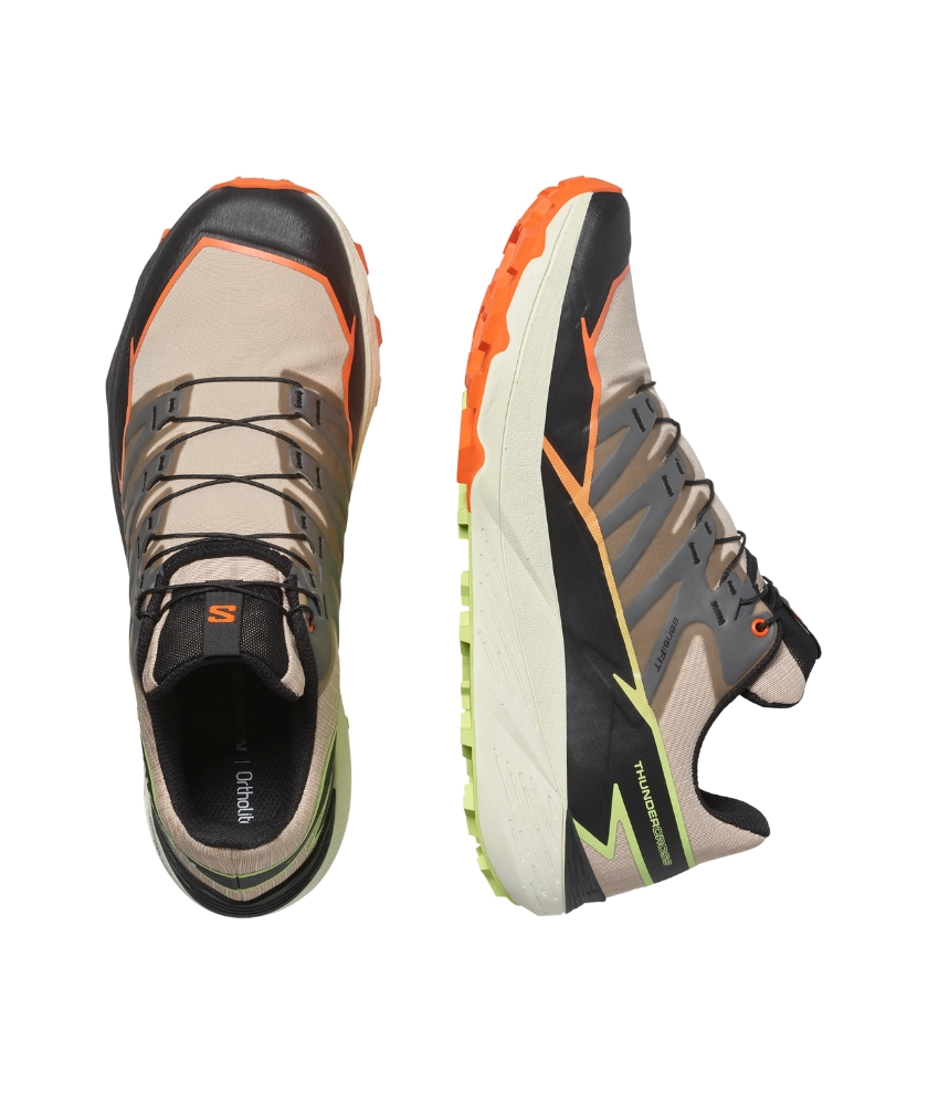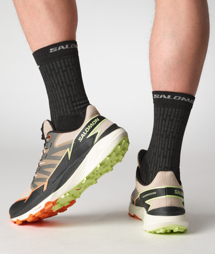 THUNDERCROSS is a trail shoe for a dynamic, cushioned ride with exceptional grip and precise foothold. Equipped with aggressive 5mm lugs to tackle any terrain, no matter how tricky, technical, or just downright nasty. Developed in the French Alps, tried and tested on everything from rolling terrain to rocky slopes or sticky single tracks.