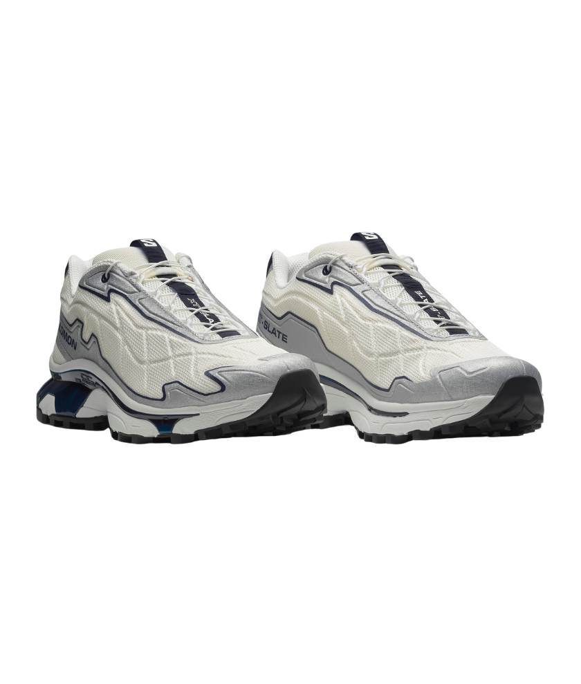 A foray into disruptive interpretations of volume, reflecting the irregular landscapes of rocky terrain and trails. XT-SLATE features a waffled and lightweight upper providing textured protection for your feet, and an Advanced Chassis bottom unit for enhanced stability.