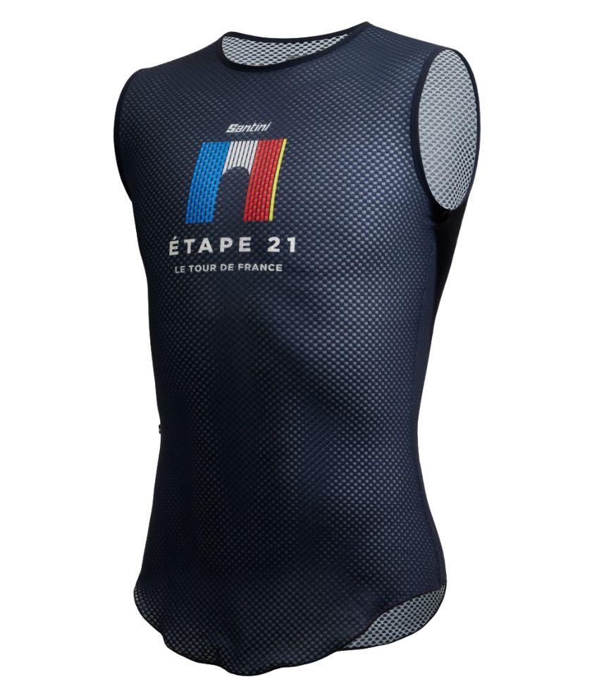 Sleeveless baselayer with a special design dedicated to the last stage of Grand Boucle which finishes in Paris. Breathable micromesh. Enjoy a supreme fit with this lightweight sleeveless base layer made from Avatar mesh. Specially engineered for a tight, elastic fit. The elongated cut provides maximum coverage and avoids a bulky feel when worn under bibshorts. A perfect match for your Trionfo kit.