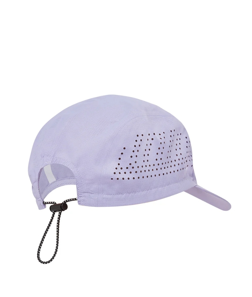 Cut from breathable, quick-drying polyester, its five-panel design wraps close for a secure fit. Laser-cut side vents regulate temperature on the move, while the elliptical peak shields from glare and downpour without obstruction.