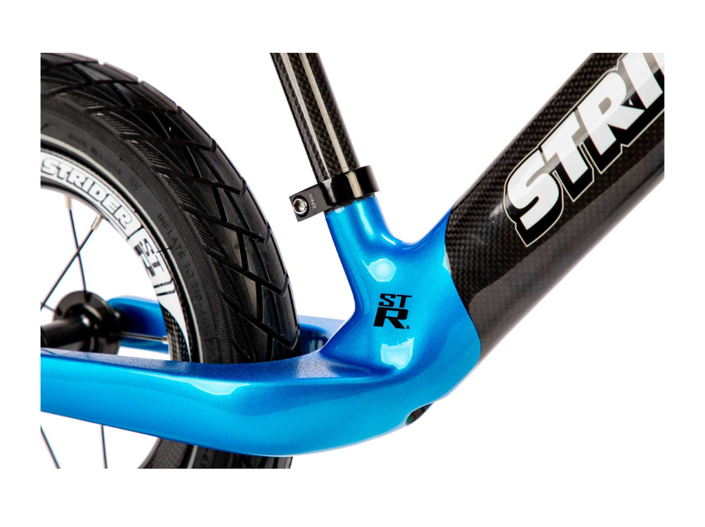 Seatpost: Strider Custom Carbon Fiber 22.2mm x 220 mm; Also includes 293mm seatpost for 3 – 5-year-olds.