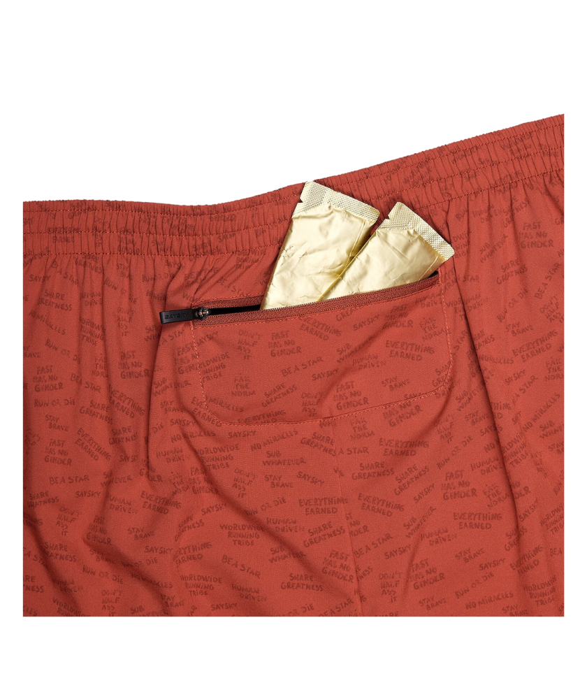 The SAYSKY Statement Pace Shorts 5" is a classic pair of running shorts - just a whole lot better. This is one of the all-time best-sellers and for good reasons. They're incredible lightweight and breathable, with a regular fit that's designed for high performance. This version is Chili Oil red with small SAYSKY statements all over.
