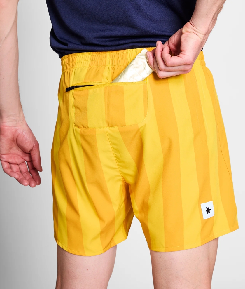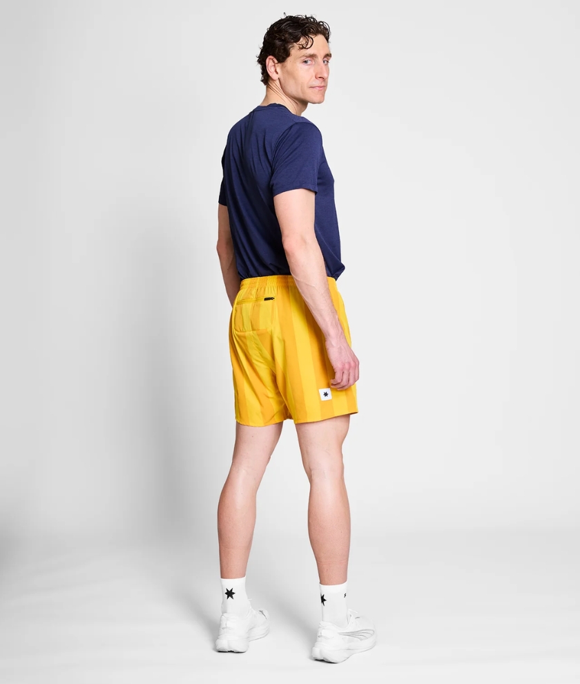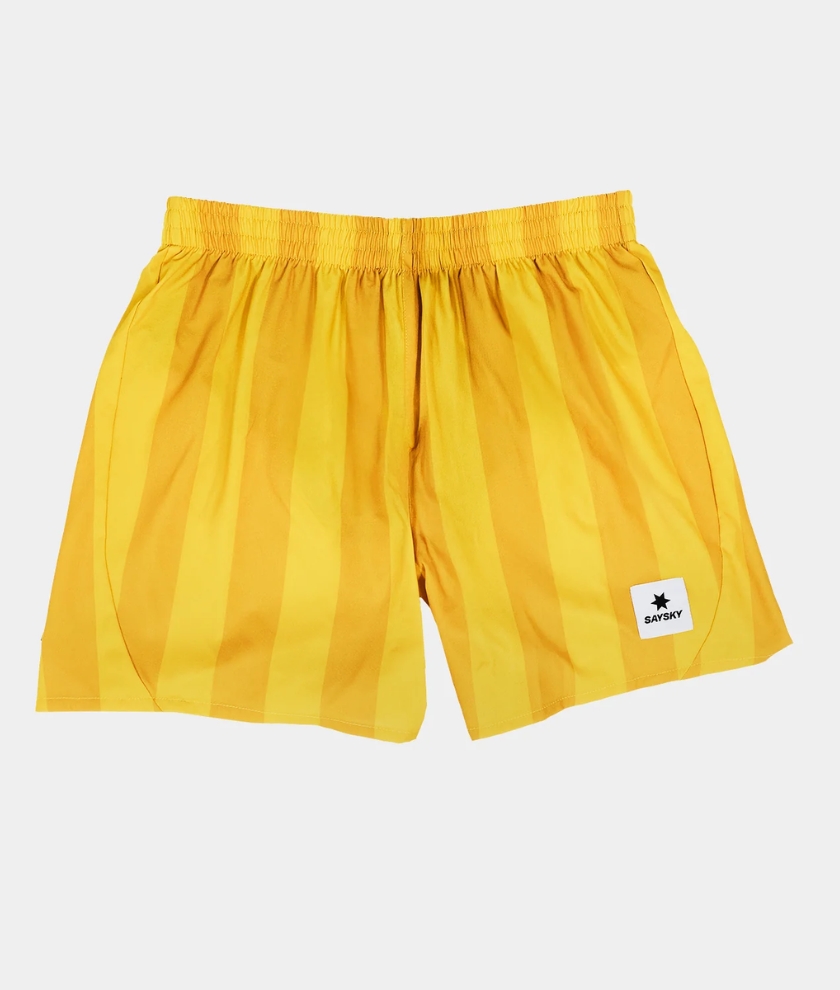 The SAYSKY Stripe Pace Shorts 5" are classic running shorts for men with tonal stripes. Lightweight and breathable enough to keep you cool when the heat is on. They’re built for speed, comfort, and everyday miles. Four-way stretch fabric ensures unrestricted movement, while the improved internal mesh brief keeps things dry and comfortable, no matter how far you push it. Finished with multiple storage options for nutrition and your essentials.