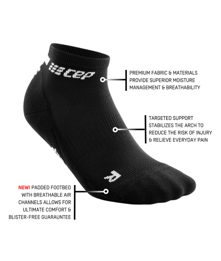 Thanks to their proven blend of materials, the Run Low Cut Socks 4.0 are the perfect choice for any time of year, activity, or style of shoe! Innovative Smart technology allows fabric to adapt to any condition ensuring a comfortable, dry foot, while medi compression supports proprioception by stimulating skin receptors and adds additional support in the arch. Experience the CEP difference today!