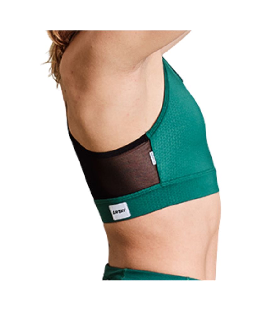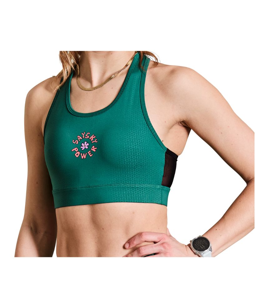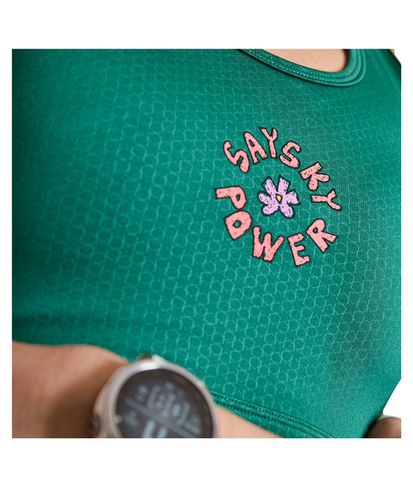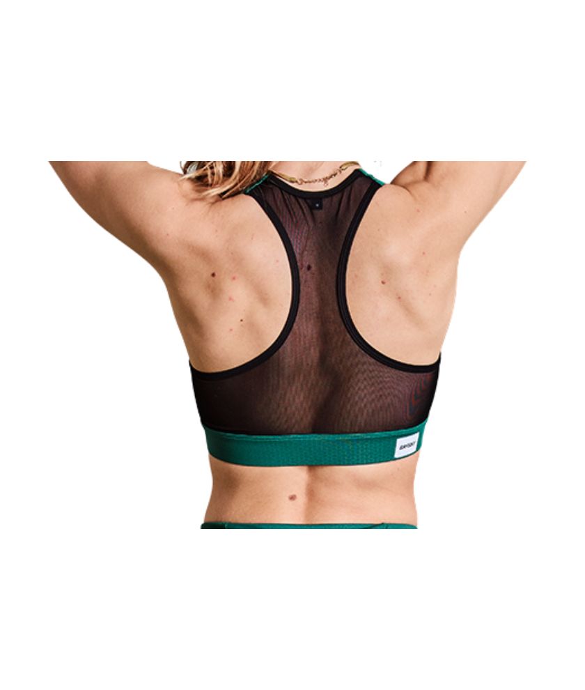 The SAYSKY Flower Combat Sports Bra has been developed in close collaboration with the cool females of the SAYSKY athlete team. It is a high-support sports bra with removable pads in green with a flower logo on the front. It is made from our recycled combat fabric, which is supersoft and lightweight. The back has been made in mesh, for a stretchy fit and maximum ventilation. It can be used for both running, training or everyday wear.