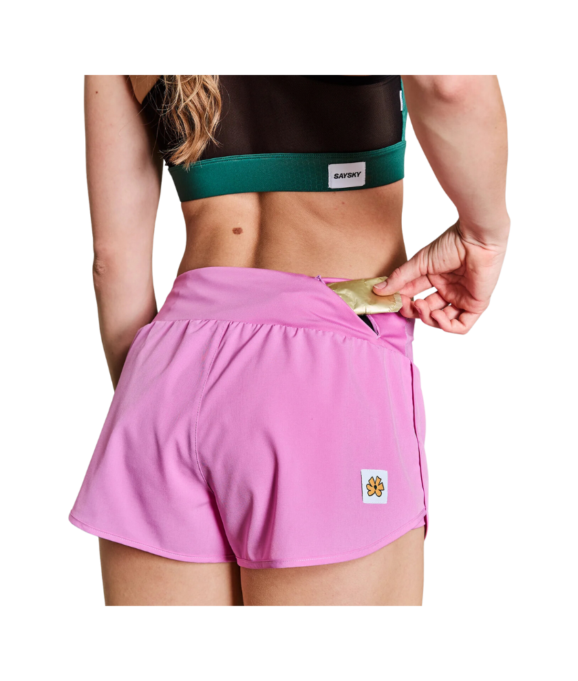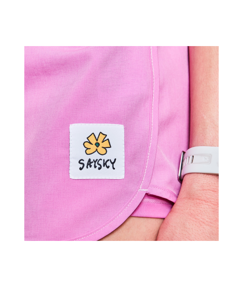 The SAYSKY womens Flower Pace Shorts 3'' is a classic pair of running shorts, designed with the highest degree of comfort and functionality in mind. They have an adjustable waistband, with an integrated back zipper pocket, as well as two internal pockets on the internal tights. They come in yellow with a woven flower SAYSKY label on the front and back. The fit is regular. These shorts are equally great whether you're going for a run or hitting the gym.