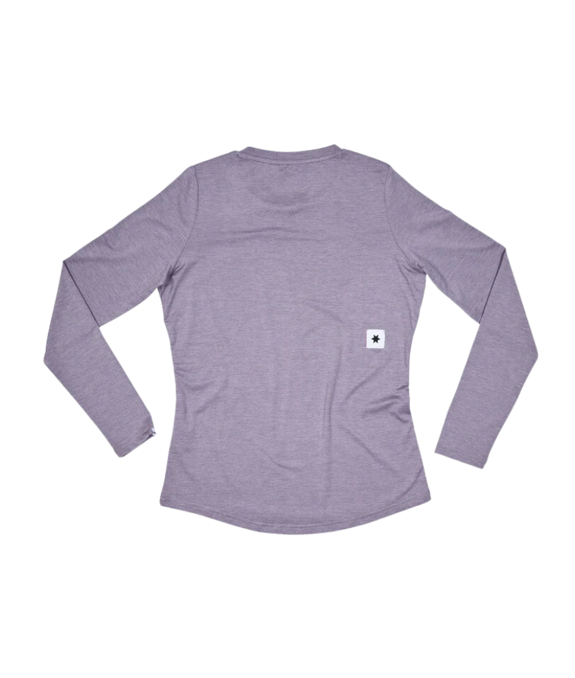 SAYSKY's Women's Logo Pace Long Sleeve is a women's long sleeve T-shirt for running. Made of recycled polyester in a bright yellow color, it features a tonal SAYSKY logo on the front chest and a white SAYSKY logo patch on the back. The regular fit design is designed to provide both comfort and high performance.