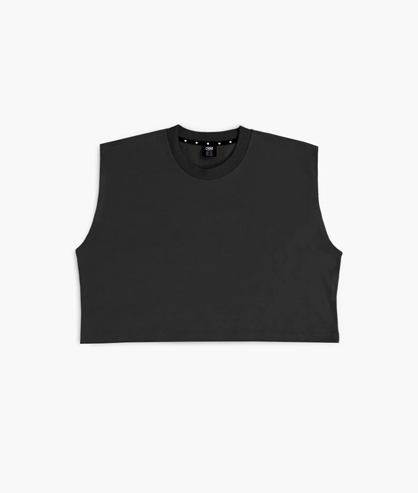 our ORTShirt found love, but also, scissors. we cropped it and cut off the sleeves. we kept it simple and clean (no graphics) and built it in the same midweight recycled cotton we use on our ORTShirt. throw it on over our QCKBra for an early morning easy run.
