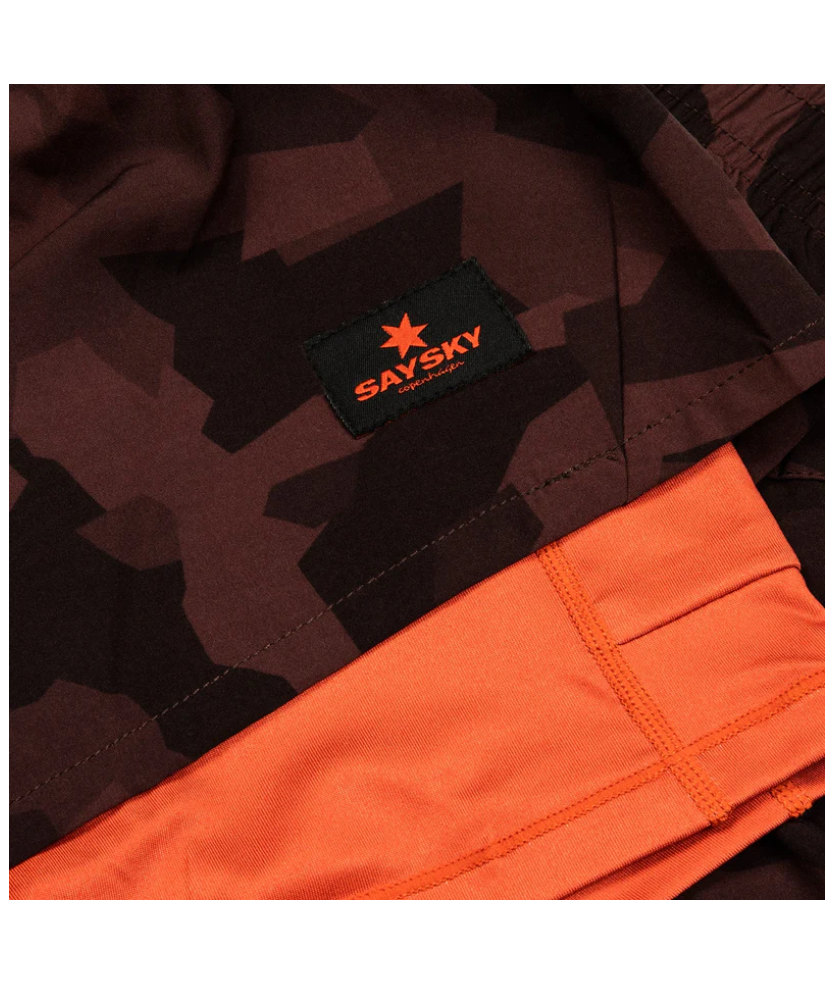 The SAYSKY Wmn's Splinter 2 in 1 Shorts 3'' is one of our most popular styles for women. These shorts come in a burgundy splinter camo print and with orange inner pants. There's a woven SAYSKY label in black/orange on the front and on the back. The fit is regular and they'll serve you well whether on the run or in the gym. This style is also ideal for trail running.