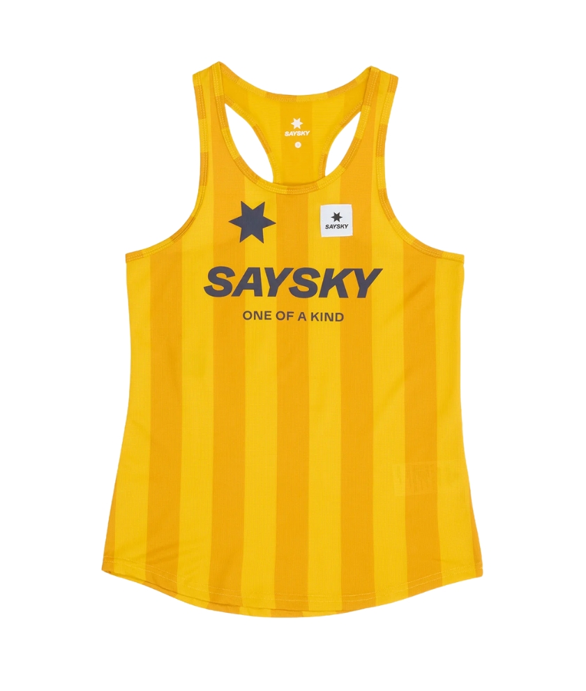 The SAYSKY Stripe Combat Singlet is a race singlet with tonal stripes. The singlet is moisture-wicking and quick-drying, ensuring high performance during your entire run. The technical construction reduces the fabric’s ability to cling to your skin. It is perfect for running in warmer weather, layering and as your race day outfit.