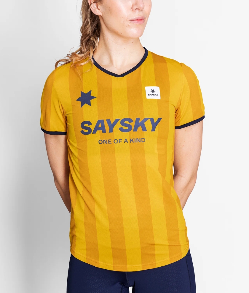The SAYSKY Stripe Combat T-shirt is a running T-shirt with tonal stripes and a bold no. 1 on the back – reminding you and everyone else, to be one of a kind. The shirt is moisture-wicking and quick-drying, ensuring high performance during your entire run. The technical construction reduces the fabric’s ability to cling to your skin. It is perfect for running in warmer weather, layering and as your race day outfit.