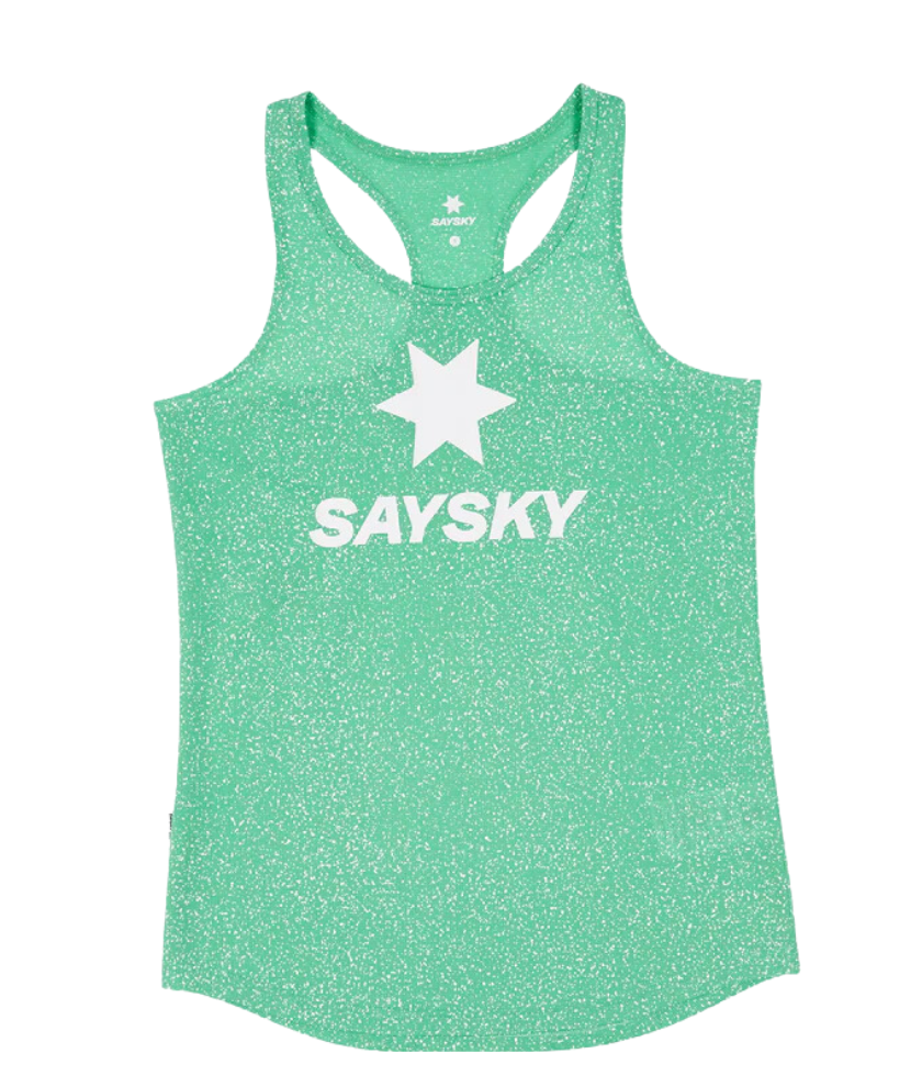 The SAYSKY Women's Universe Combat Singlet is a women's regular racing singlet. The body is printed with Minty Universe, the classic white SAYSKY logo is designed on the front chest, and the back side has a white SAYSKY logo label. This singlet has excellent moisture absorption and quick drying properties, and maintains good air flow while ensuring high breathability. The fabric has a technical construction that reduces the amount of fabric clinging to your skin. Made with 68% recycled polyester made in Japan, it is a highly functional lightweight material that is soft to the touch and highly flexible.