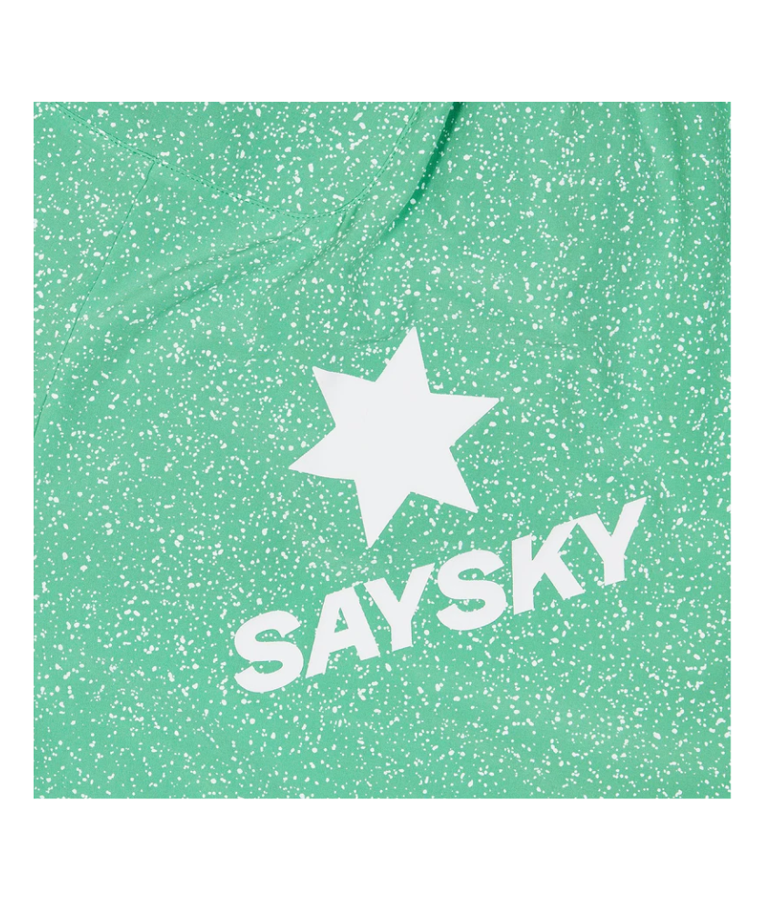 SAYSKY Women's UNIVERSE Pace Shorts 3 inches are classic running shorts for women with a short inner. It features an all-over Minty Universe print and a white SAYSKY logo patch on the front hem. The back features the classic white SAYSKY logo. Lightweight, highly breathable, and has a regular fit for high performance. Suitable for running as well as for use at the gym.