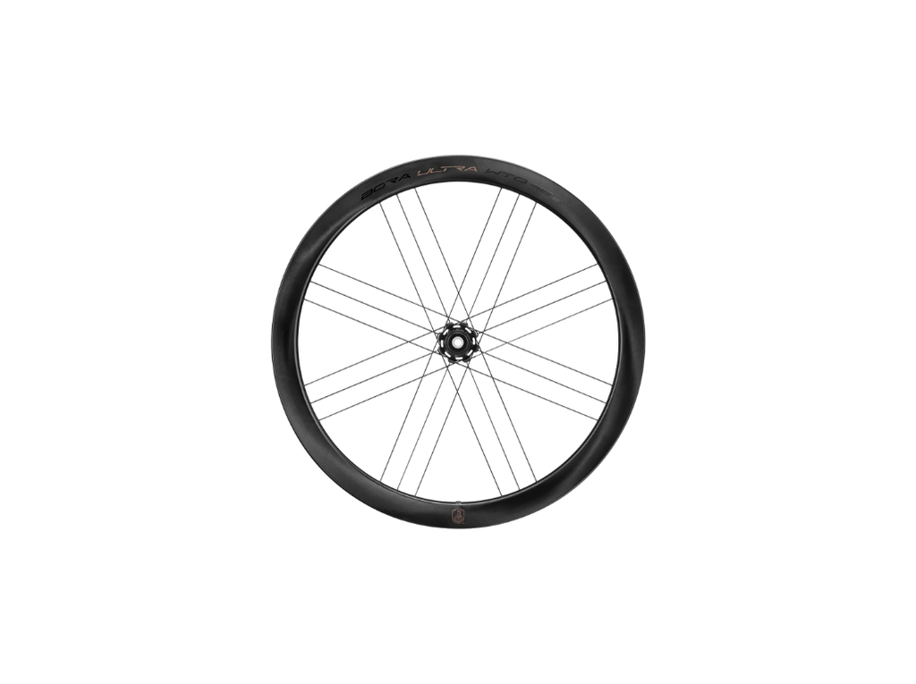 Now even lighter, thanks in part to its Hand Made Ultra-Light Carbon (H.U.L.C.) construction, the Bora Ultra WTO 45 has slimmer Aero Elliptical spokes and hidden nipples to help slice through the air. Campagnolo’s beautifully molded carbon hub body is securely bonded to a light aluminium hub flange, and integrated radial spoke seats ensure perfect alignment. A uniquely stunning C-LUX finish and new, subtle Bora Ultra graphics ensure the new wheels have the show to match their go.