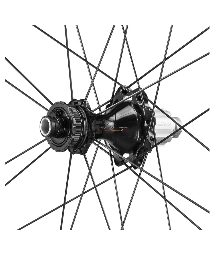 Campagnolo’s CULT ceramic bearings spin effortlessly within both the front aerodynamic carbon body and the rear aluminium shell of the disc hubs. The rear oversized 36 tooth ratchet system can be driven by N3W, XDR or HG freehub bodies.