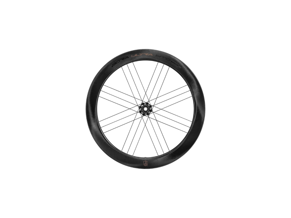 The advanced, wind tunnel optimized profile of its 60mm deep carbon rim, promises sharp, confident handling in all conditions. All-new aero spokes with hidden nipples reduce aerodynamic drag, while CULT ceramic bearings minimize friction. Campagnolo’s beautifully molded carbon hub body is securely bonded to a light aluminium hub flange, and integrated radial spoke seats ensure perfect alignment.