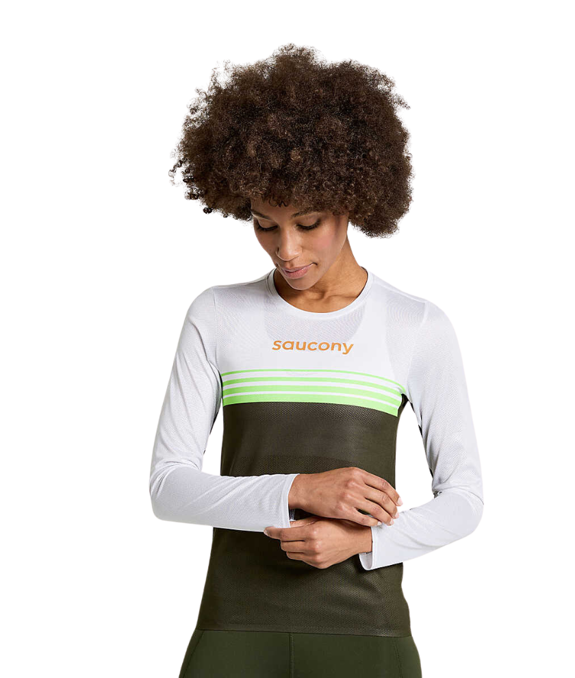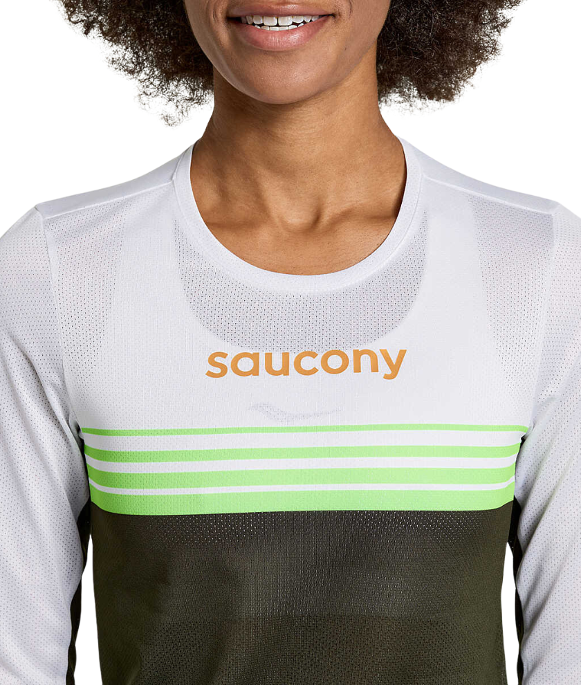 The Saucony Elite Long Sleeve more than delivers on lightness, breathability, and speed. You can count on staying cool any time the race heats up. It's a lightweight top with exceptional wicking and drying for the ultimate performance.