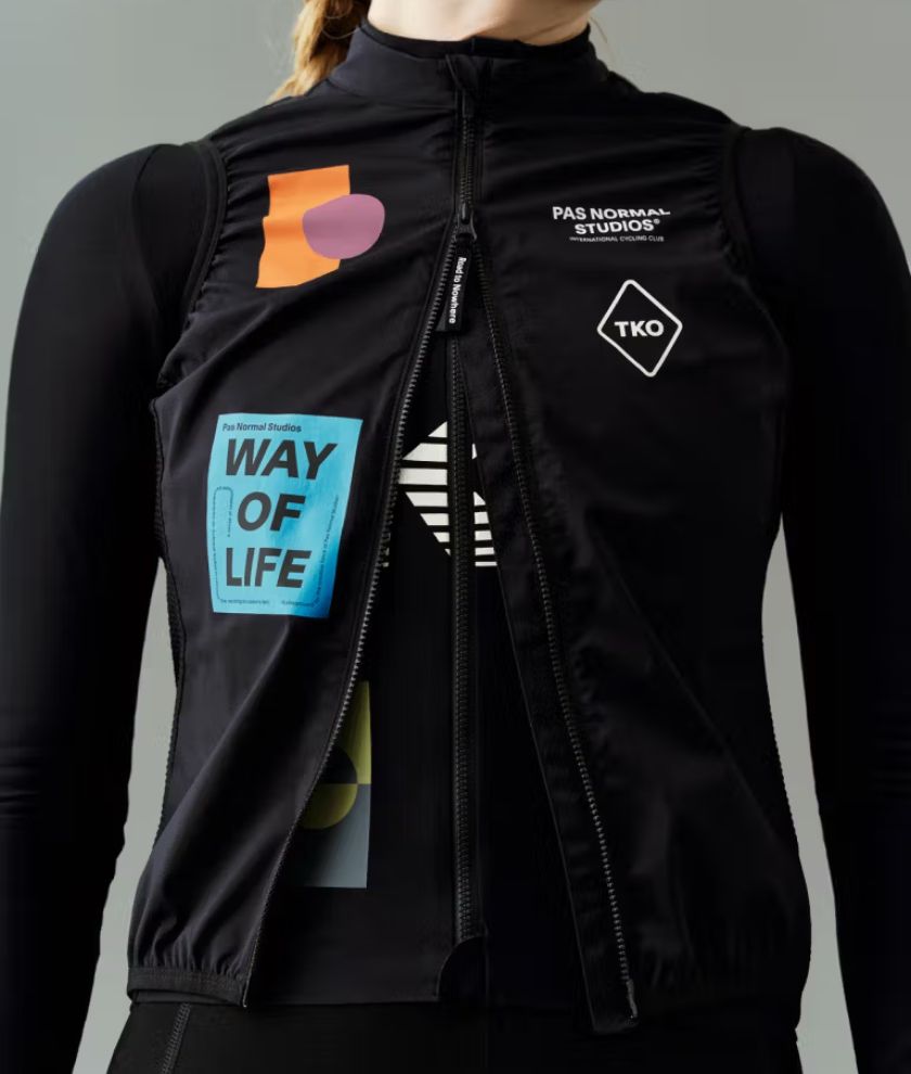 This gilet features a robust double-sided zipper with a woven Road to Nowhere branded zip puller to provide easy access to your jersey pockets and promote additional ventilation when desired.